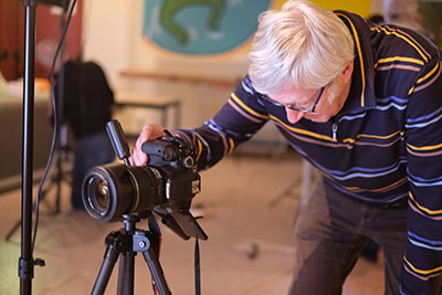 Statief uitklappen, camera voorzien van 80mm lens en aan de slag. Vandaag geen flits voor mij maar bij de andere opstellingen zie ik de flitsers voorzien van softboxen in gebruik genomen worden. Altijd goed natuurlijk want daar hebben we ze voor in de club. Een beetje oefenen met de apparatuur kan ook geen kwaad. Nadat ik enkele foto’s heb gemaakt die, naar ik hoop, de toets der kritiek kunnen doorstaan sta ik mijn plekje af. Samen met Jan kijken we naar de instellingen van zijn camera. Nieuwe leden kunnen tijdens deze avonden oefenen, samen leren we zo hoe het in zijn werk gaat. Sluitertijd, ISO, diafragma, het lijkt allemaal eenvoudig maar zelf de juiste knopjes en instellingen vinden is zo gemakkelijk niet. De vrij donkere omgeving help dan ook niet. Een extra lampje moet dan soms uitkomst bieden.